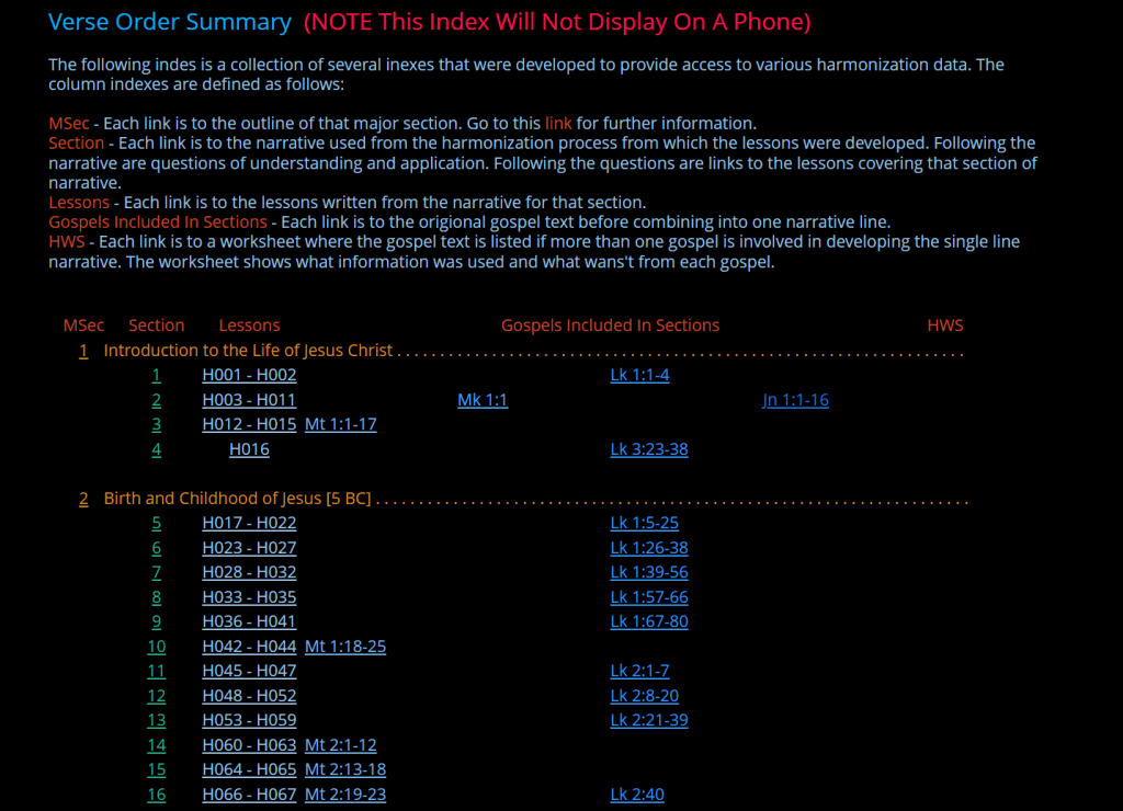 The following images are screenshots or the original Harmonization Index. There is no functional purpose of these images except to remember how it looked before migration to WordPress. Using this link takes you to the new look in WordPress, which was reorganized for phone access. While still active, this link shows the original.