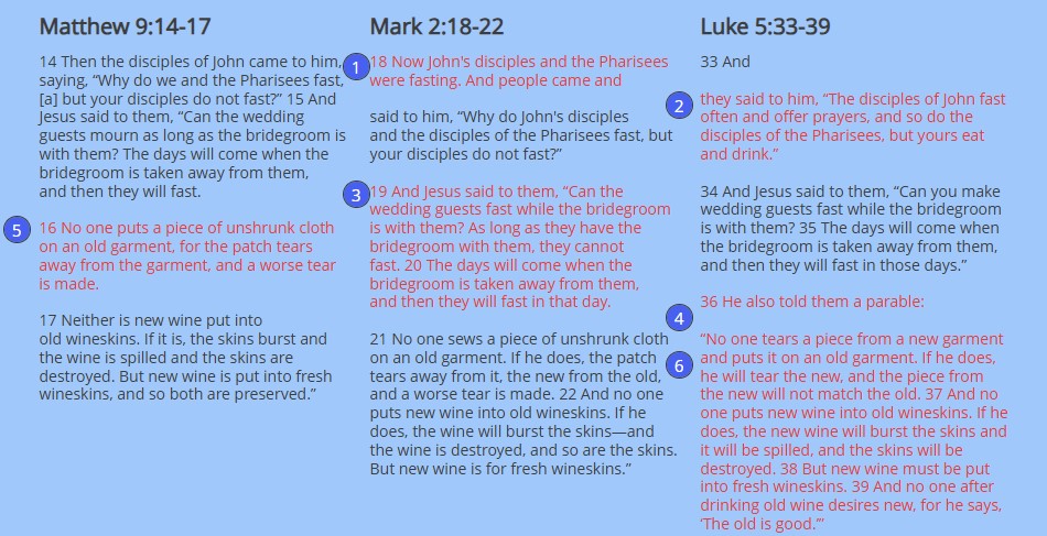 Scripture Reference: Matthew 9:14-17; Mark 2:18-22; Luke 5:33-39