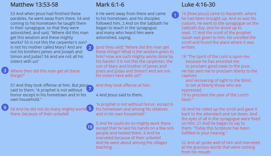 Scripture Reference: Matthew 13:53-58; Mark 6:1-6; Luke 4:16-30