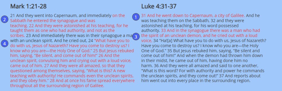 The accounts in Mark and Luke complement each other and provide a fuller picture. Mark emphasizes the immediacy and authority of Jesus’ actions, while Luke highlights the power and impact of His word. Together, they reinforce key themes: Jesus’ authority, the recognition of His identity by the spiritual realm, and the amazement of the people. The consistency between the accounts strengthens their reliability and underscores the significance of the event as a defining moment early in Jesus’ ministry.